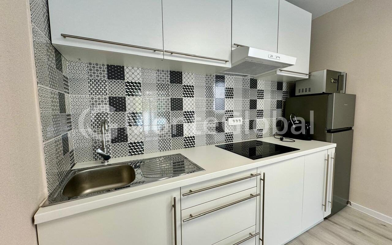 Ее площадь составляет 43м2. Планировка включает в себя объединенную гостиную и кухню, одну спальню, ванную комнату и террасу, откуда открывается вид на горы и городские пейзажи.