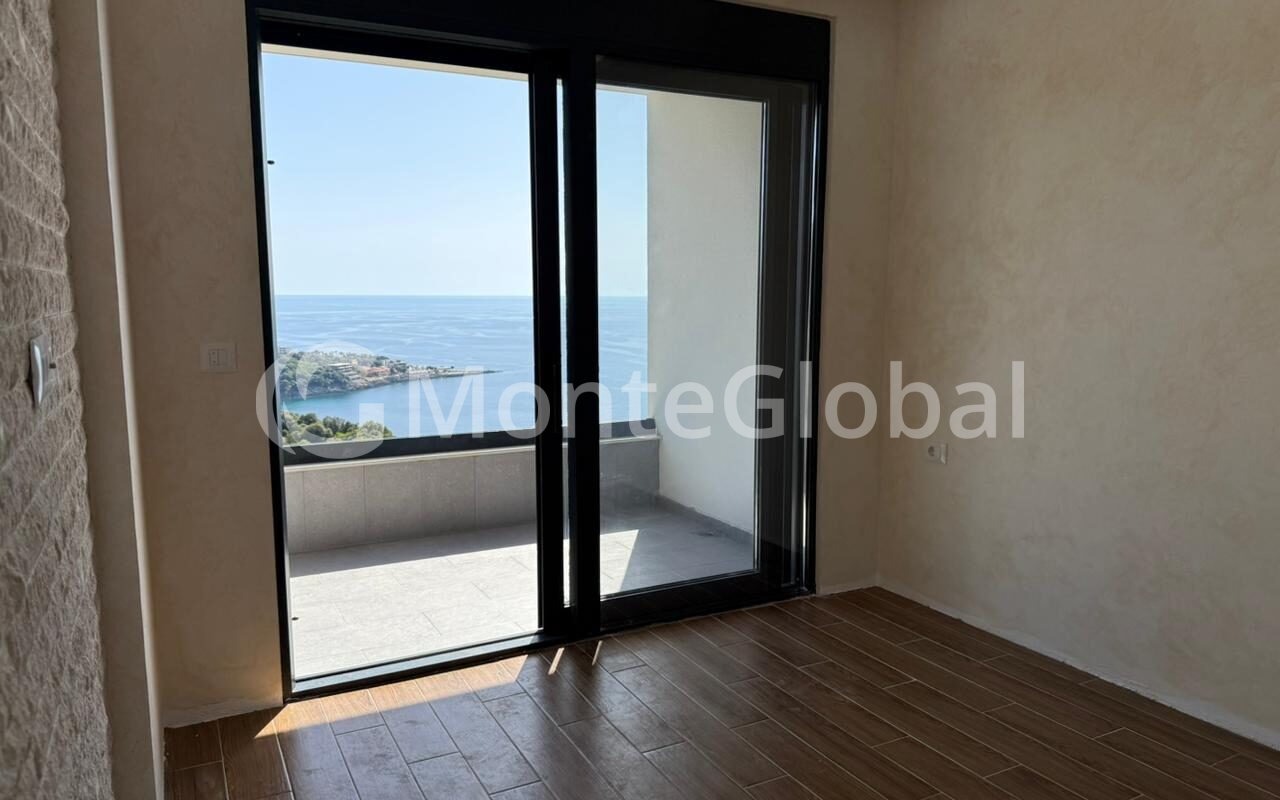 Пространство включает в себя совмещенную кухню-гостиную, изолированную спальню, санузел и террасу, откуда открывается великолепный вид на море.