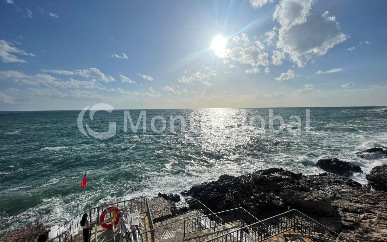 Апартаменты размещены на втором этаже четырехэтажного дома и частично открывают вид на морское побережье.