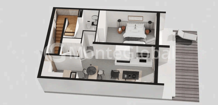 В живописном городе Тиват, что в Черногории, расположился эксклюзивный жилой комплекс. Апартаменты здесь созданы с особой тщательностью и вниманием к деталям, предлагая все необходимое для комфортной жизни. Современный архитектурный проект обеспечивает захватывающий морской пейзаж из каждого окна. На сегодняшний день этот комплекс выделяется лучшим соотношением цены и качества в Тивате. Квартира площадью 98,80 м2, жилая зона 62.84 м2, находится на первом этаже трехэтажного дома. Планировка включает просторную гостиную, объединенную с кухней, спальню и террасу с прекрасным видом на море.